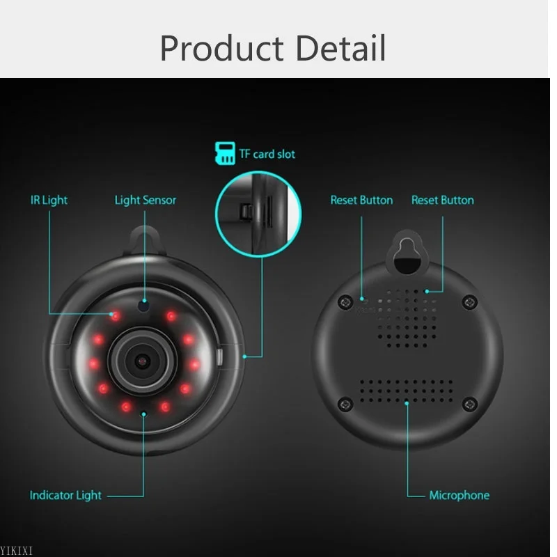 Установка приложения: поиск"V380«В App Store (для устройства IOS) или Google Play Market (для устройства Android) Особенности:YIKIXI Ip-камера Wi-Fi рыбий глаз 360 градусов без слепых пятен. Камера следит за каждым углом в вашем доме/магазине/офисе, никогда не пропустите ничего, что произошло в области мониторинга. Одного достаточно для вашей домашней безопасности. Получайте информацию о каждом движении в вашем доме с помощью push-уведомления телефона или храните предупреждающие изображения на микро-sd; Датчики обнаружения движения «чувствуют», когда что-то движется, и незамедлительно сообщат вам об этом; идеально подходит для наблюдения. ИК Ночное Видение позволяет четко видеть HD видео наблюдения ночью, вы никогда не пропустите ни минуты, видимость до 16 футов в полной темноте. Встроенный фильтр для защиты от шума камеры обеспечивает сверхчеткий двусторонний доступ к аудио-и видеочату. Быстро Подключайтесь к своей семье, друзьям и вашим домашним животным на мобильных устройствах; Разговаривайте с камерой или слушайте камеру, нет расстояния, чтобы общаться с семьей. Записывайте, храните и просматривайте кадры с помощью карты Micro SD (минимальная поддержка 8G, максимум 128G) и управляйте непосредственно с вашего мобильного устройства; Изображения оповещений будут храниться на sd-карте, И вы можете воспроизводить видео на своем телефоне.