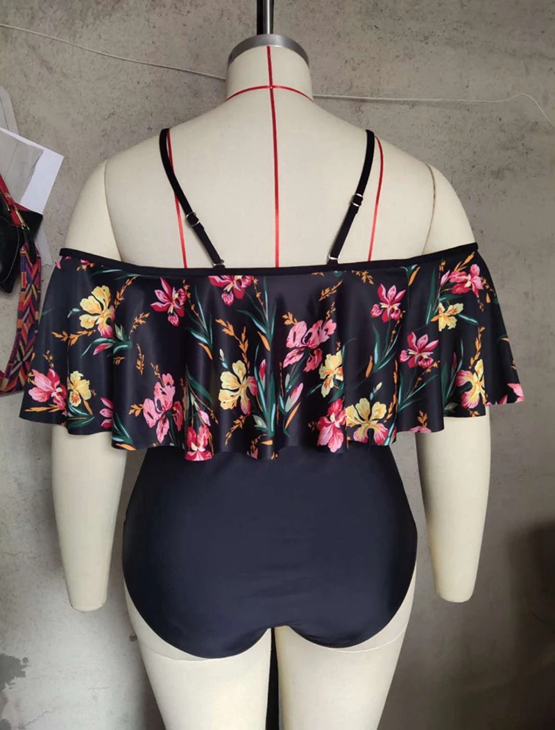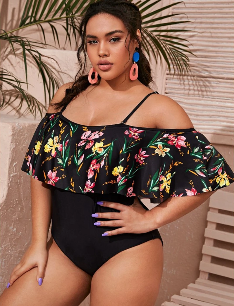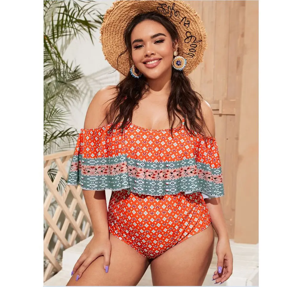 Женский сплошной купальник размера плюс, женский купальный костюм с оборками, купальник с открытыми плечами, монокини с оборками, сексуальный купальник 2020