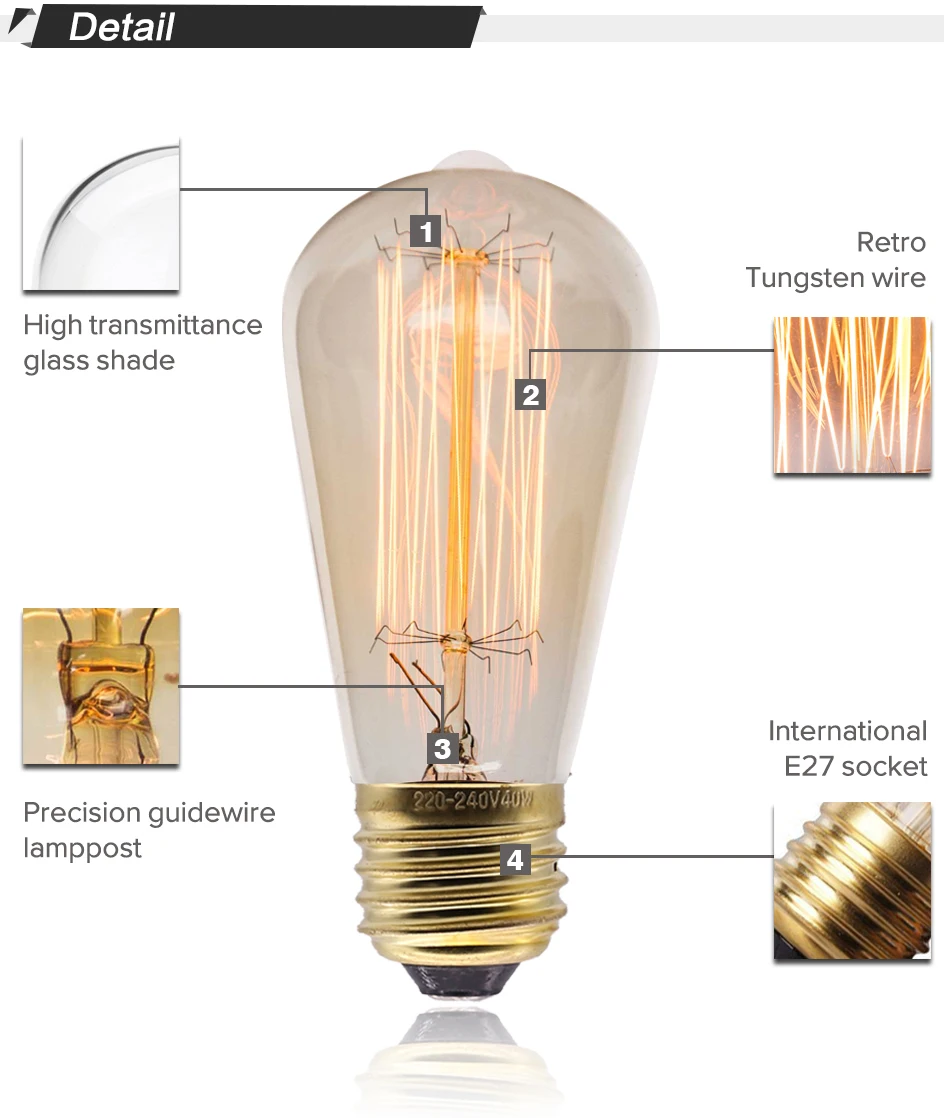 Лампа Эдисона E27, 220 В, 40 Вт, ST64, A19, T45, G80, G95, G125