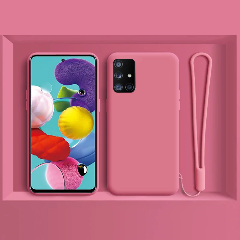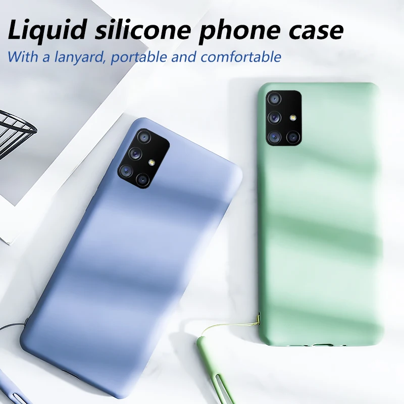 Мягкий чехол из жидкого силикона для Samsung A51, A71, A70, A50, S20, S21 Ultra, S10, Note 10 Plus, A20, A30, M52, 5G A22, S20FE, A31, ремешок на запястье