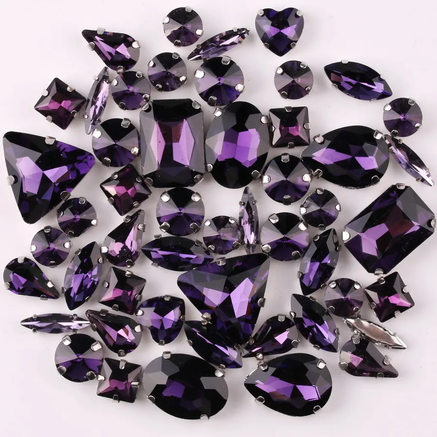 Набор серебряных когтей, 50 шт.пакет, форма, Микс, аметист, стекло, кристаллы, пришитые Стразы, свадебные модельные туфли, сумка, сделай сам, отделка