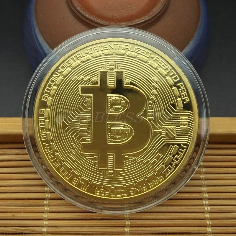 Коллекция физических биткоинов, покрытых золотом, с чехлом, Подароч...
