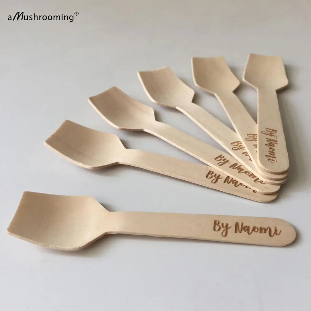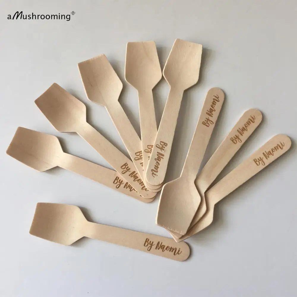 Деревянные Мини-ложки с гравировкой на заказ для мороженого вечерни...
