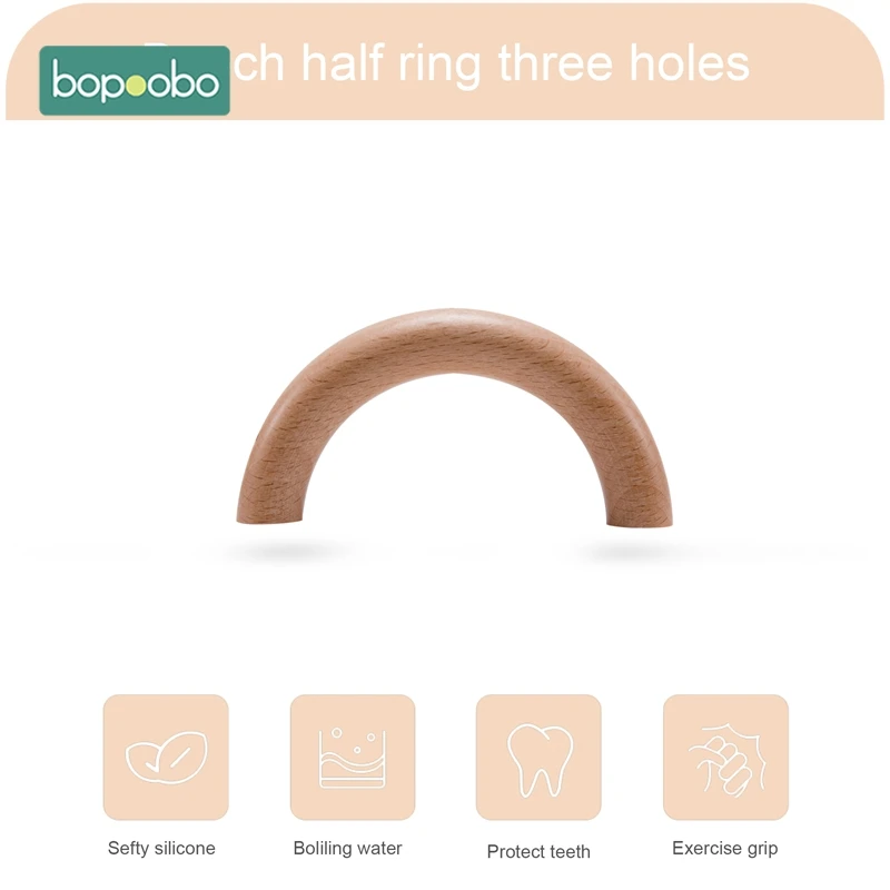 Bopoobo 10 шт., полукольцо, бук, деревянный единорог, Прорезыватель для зубов, три отверстия, детский деревянный Прорезыватель для новорожденных, игрушка для игры в тренажерный зал, сделай сам, прорезыватели