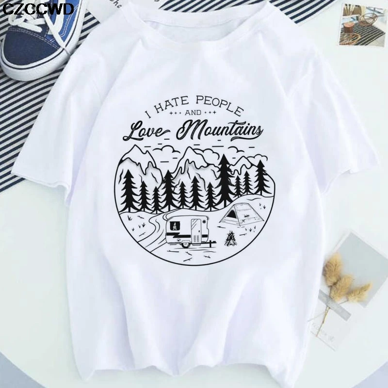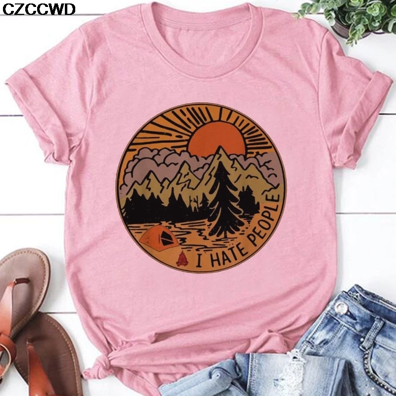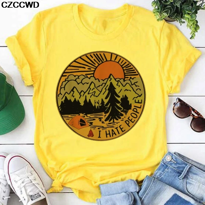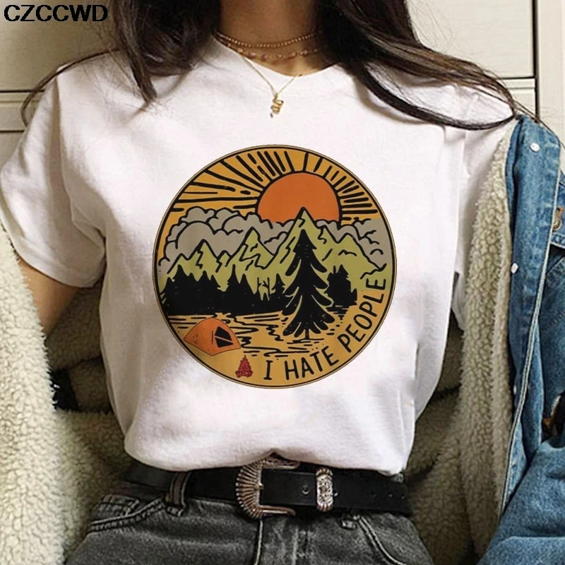Размера плюс для женщин футболки я ненавидеть людей: футболка с коротким рукавом и надписями 2020 летние модные футболки женские топы на рост 90, Ретро стиль, Повседневная футболка
