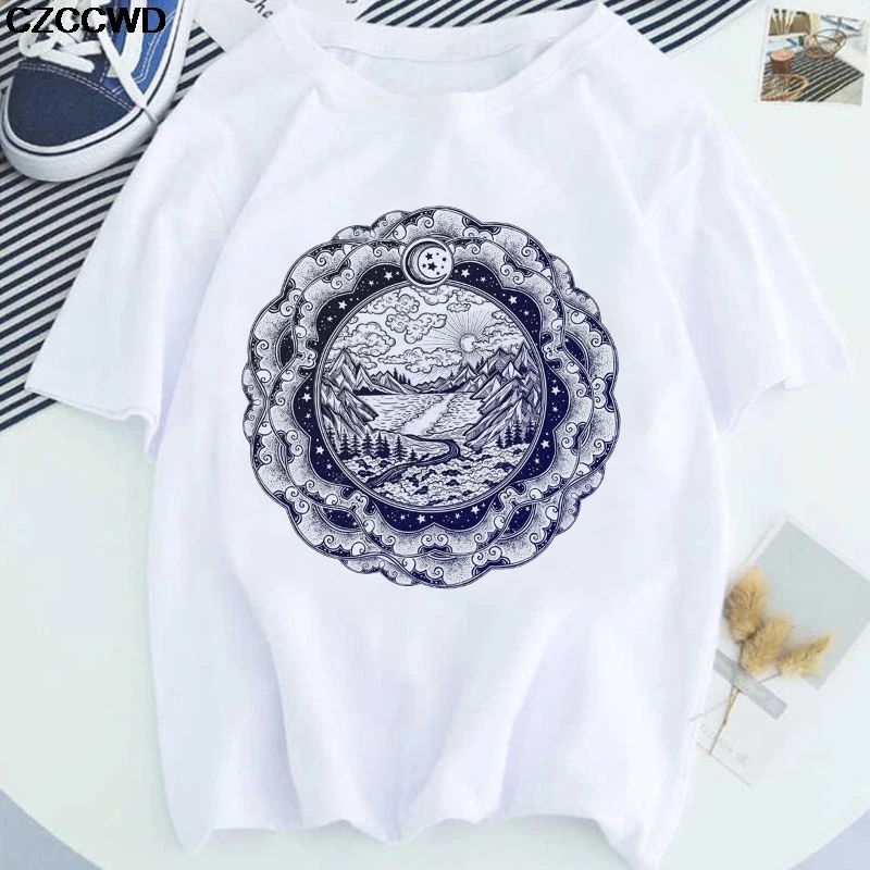 Футболка женская с круглым вырезом, Модный повседневный топ с солнц...