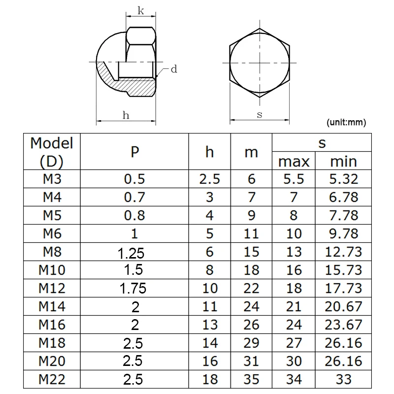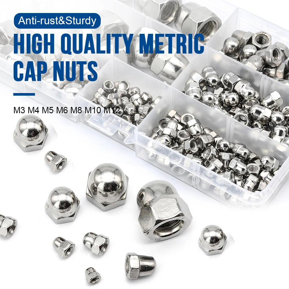 Набор гаек nindjin, 190 шт., шестигранная купольная гайка из нержавеющей стали, M3 M4 M5 M6 M8 M10 M12