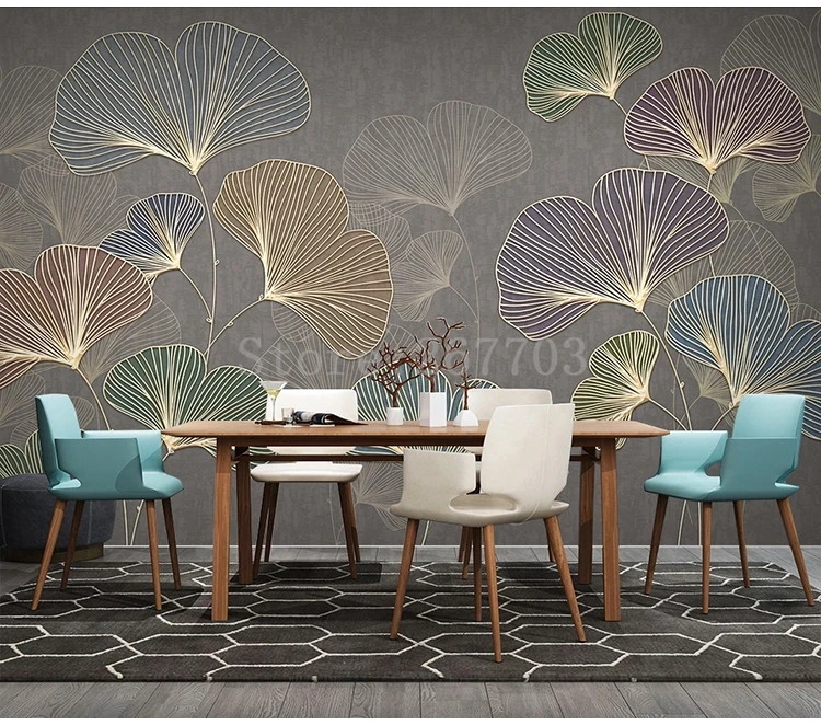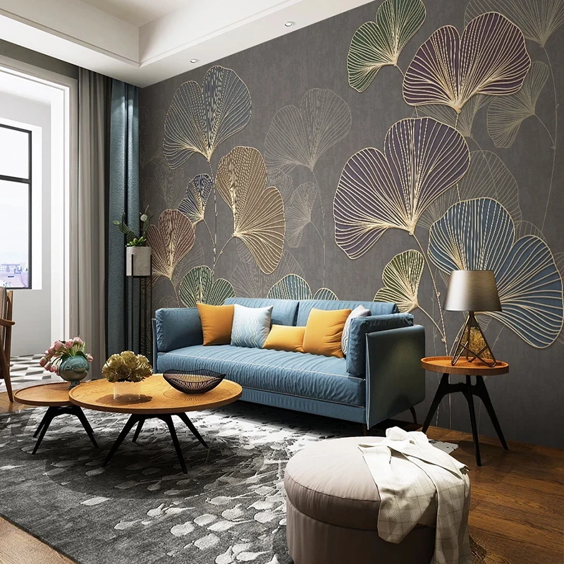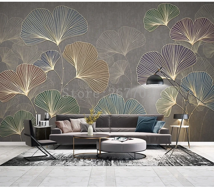 Современные линейные рельефные листья гинкго, фотообои, 3D настенная живопись для гостиной, спальни, телевизора, дивана, домашнего декора, художественная роспись, покрытие стен