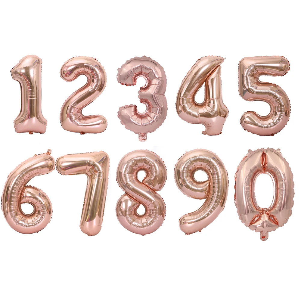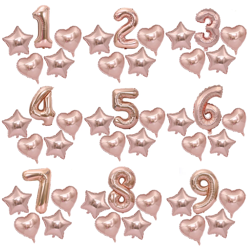 Набор воздушных шаров YORIWOO из фольги розовое золото, 7 шт., цифр...