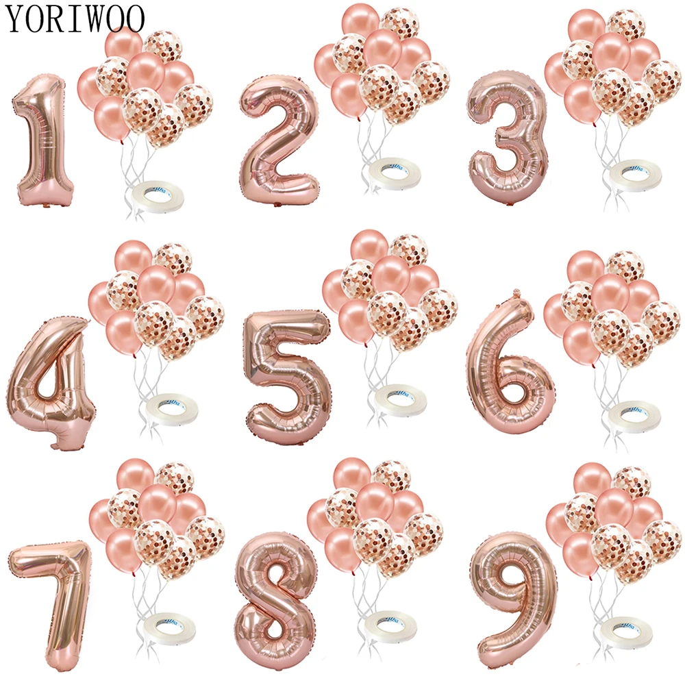 Розовое золото YORIWOO, 1, 2, 3, 4, 5, 6, 7, 8, 9, фольга, фотошар на день рождения, украшения на 1-й день рождения, детский праздник для будущей мамы