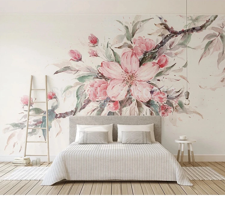 Настенные 3D фрески на заказ, роспись вручную, розовые цветы, Большая фреска для гостиной, спальни, домашний декор, нетканые обои