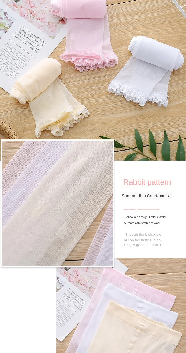 Колготки для девочек детские колготки с кружевами и кроликом 2021 летние ультра-тонкий анти-крюк дышащие леггинсы принцессы для малышей