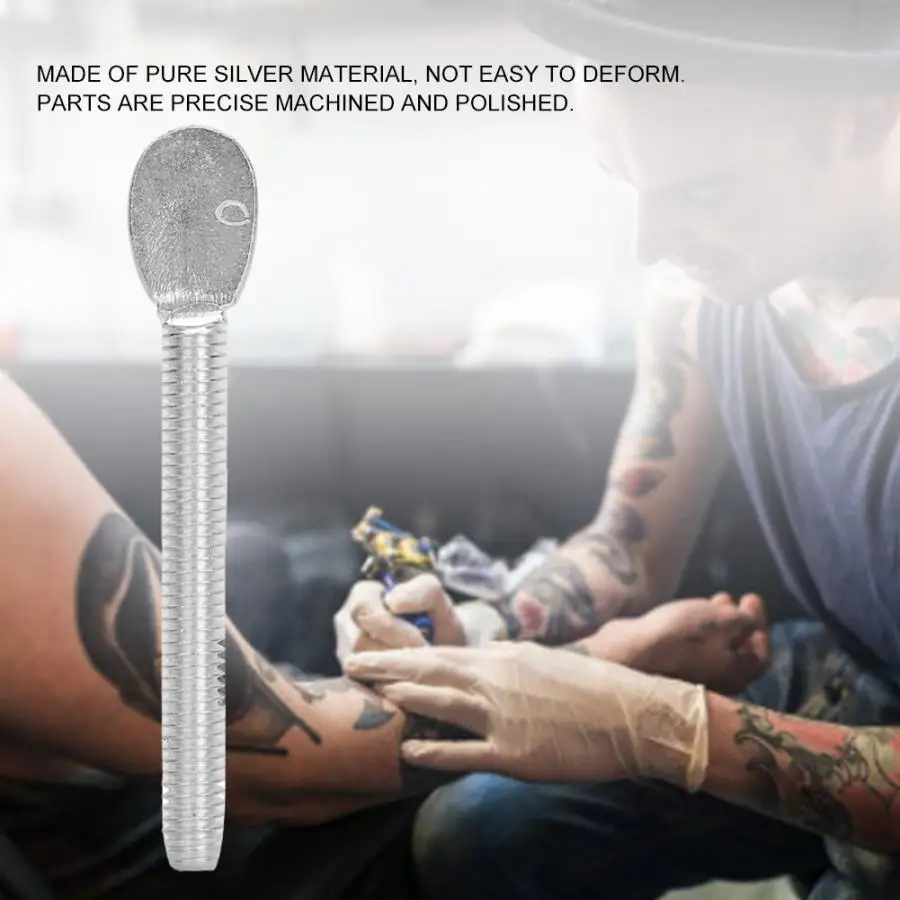1. Изготовлен из чистого серебра, не деформируется, используется для долго. 2. Детали аккуратно обработаны и отполированы, гладкие, без заусенцев. 3. Идеальный аксессуар для всех стилей тату-машинок. 4. Отлично подходит для персонализации вашей тату-машинки, обеспечивая лучшую проводимость. 5. Простой дизайн светильник вес, удобство переноски и использование.