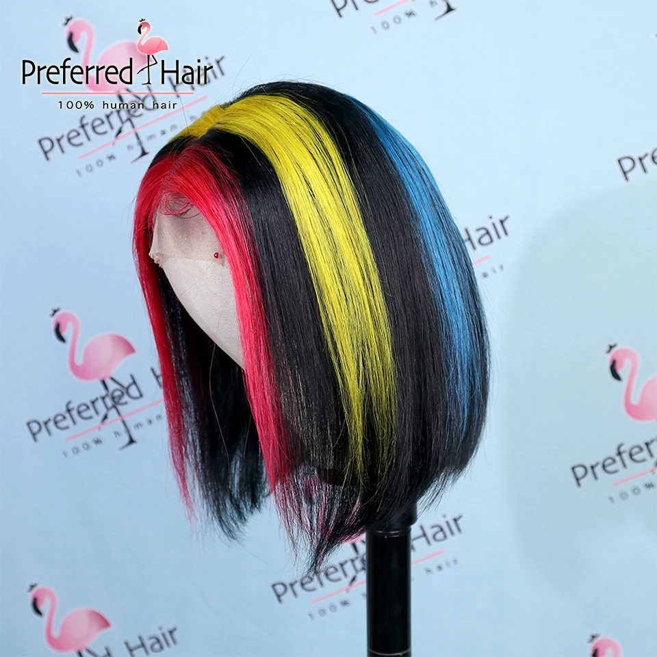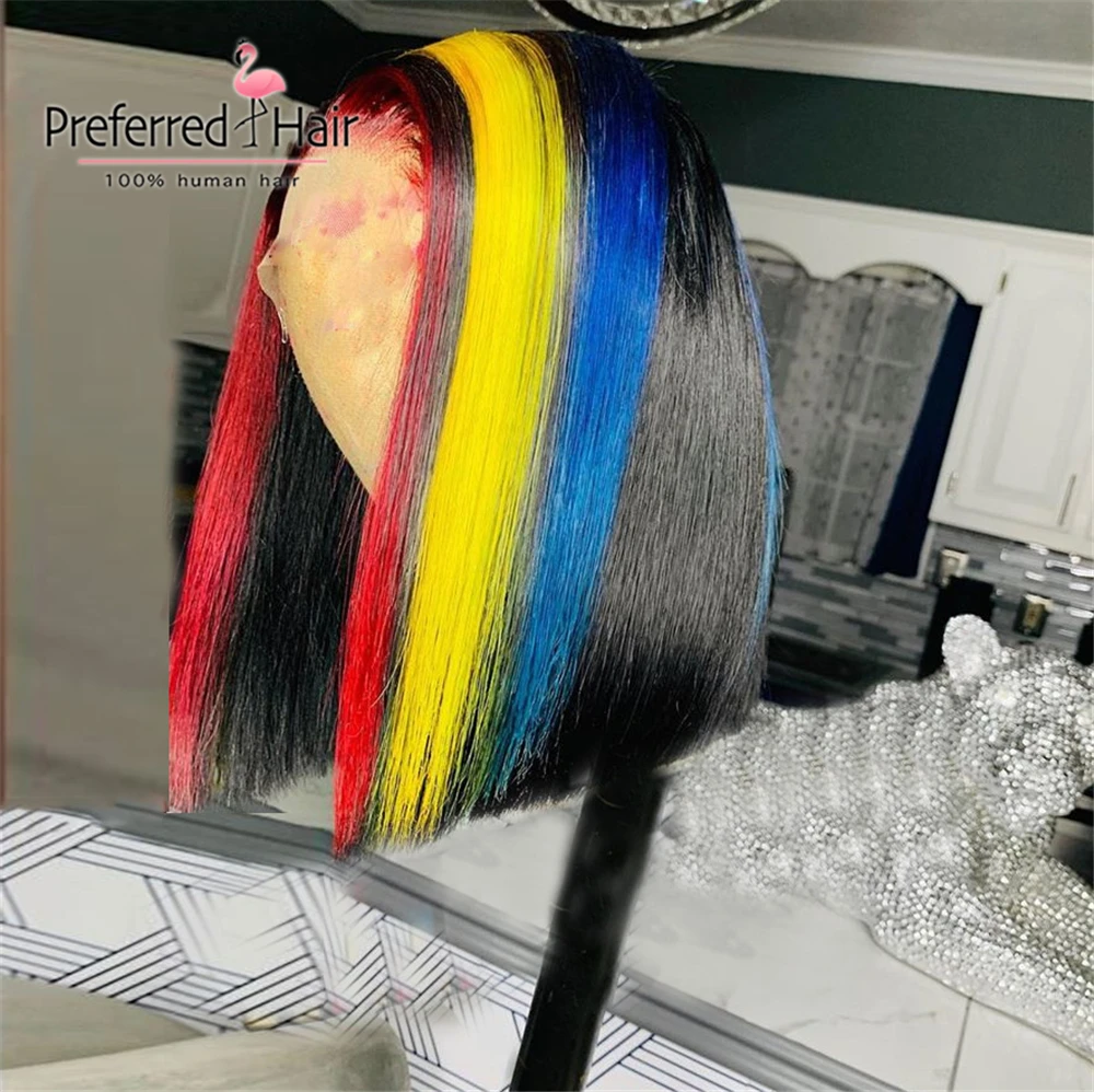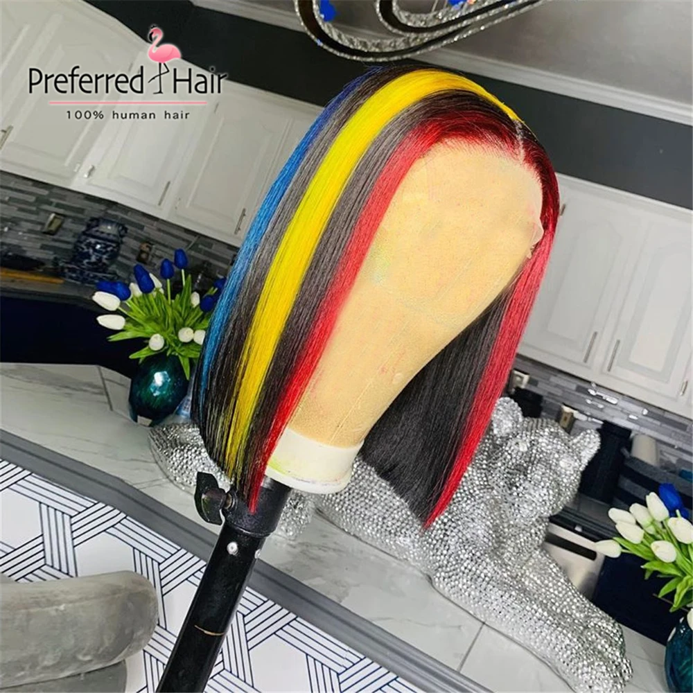 Предпочтительный предварительно выщипанный парик Боб 13x6 розовый синий передний парик на сетке Радужный передний парик на сетке человеческие волосы парики для чернокожих женщин