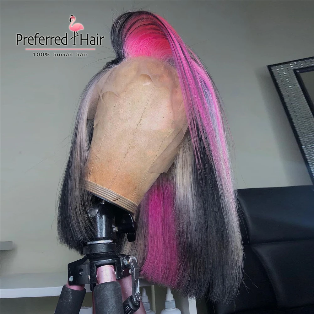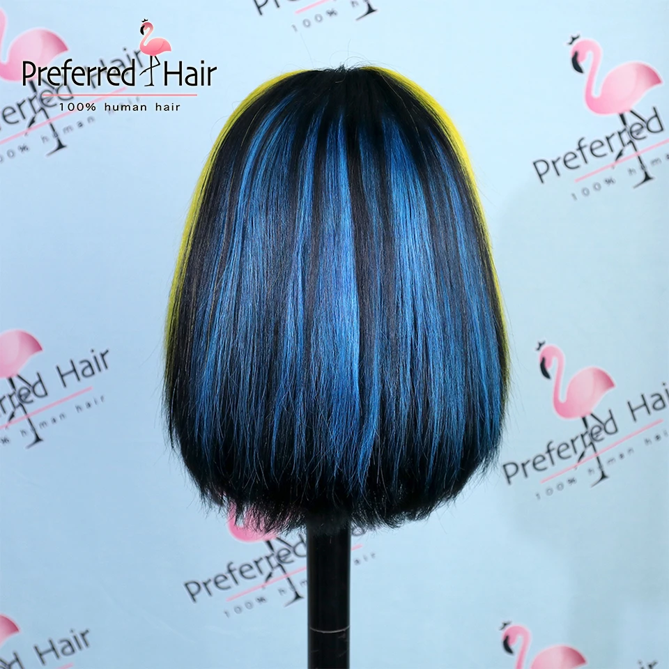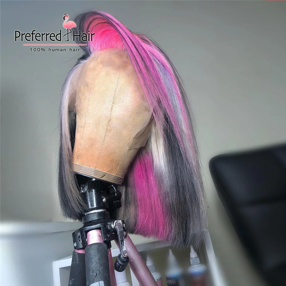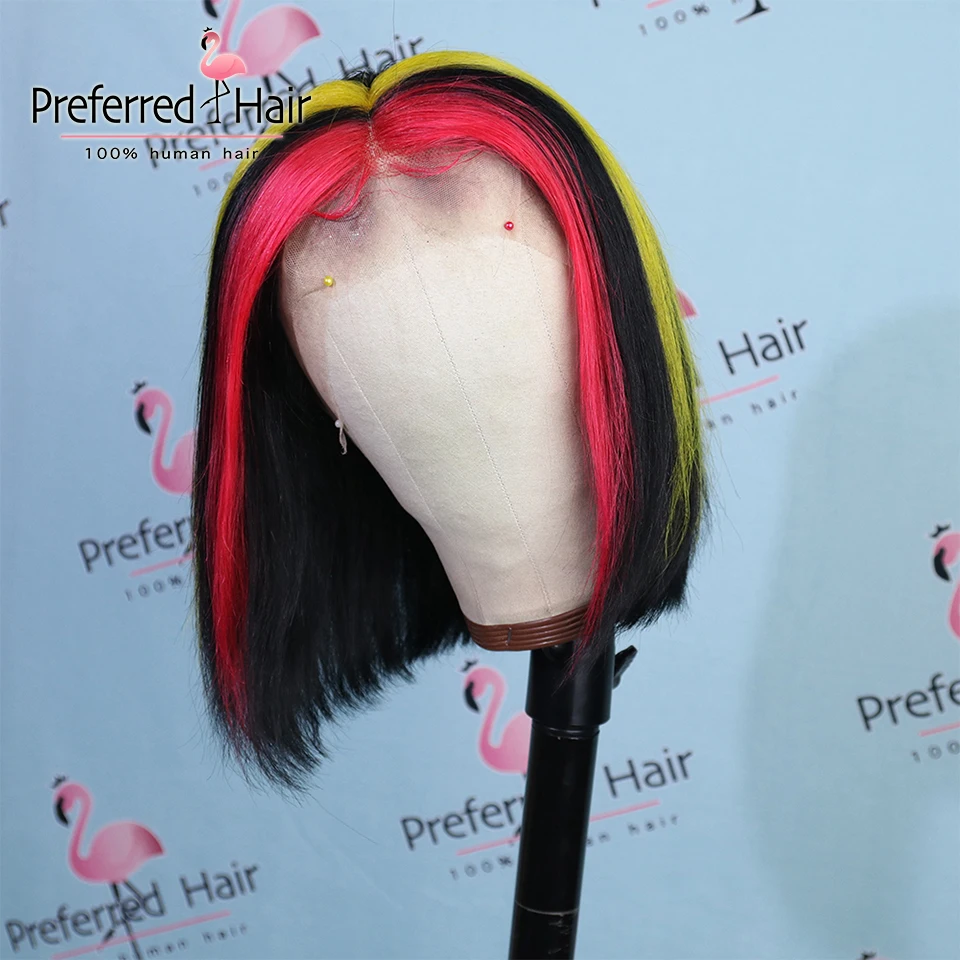 Предпочтительный предварительно выщипанный парик Боб 13x6 розовый синий передний парик на сетке Радужный передний парик на сетке человеческие волосы парики для чернокожих женщин