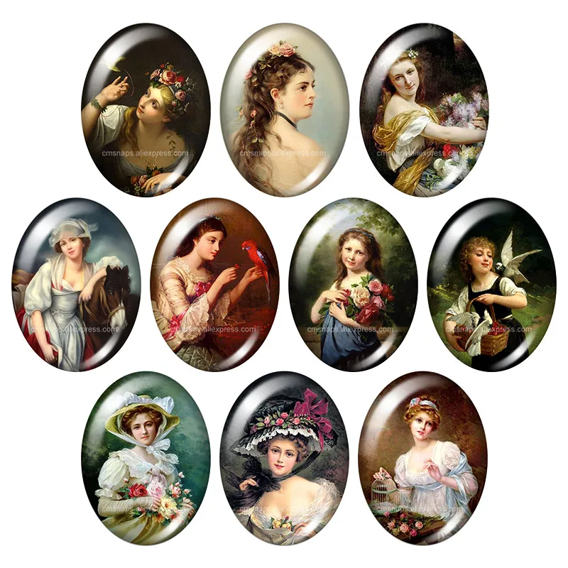 Картины в винтажном стиле ретро леди овальные 13x8 мм18x25 мм30x40 мм Смешанные фото стекло кабошон демонстрация с плоской задней частью ювелирных изделий