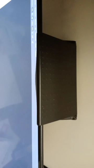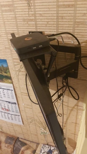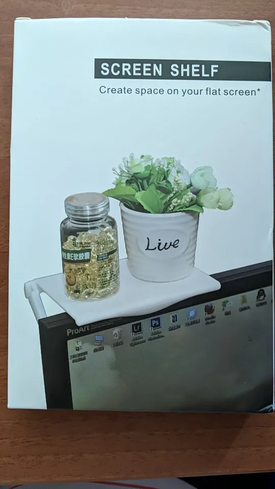 Коробка вся помялась, хотя и пришло не почтой. Вроде неплохой товар, надеюсь, 1 штуки хватит поставить саундбар на телевизор. На фото монитор с минимальными рамками, на который точно не стоит вешать (упирается в матрицу).