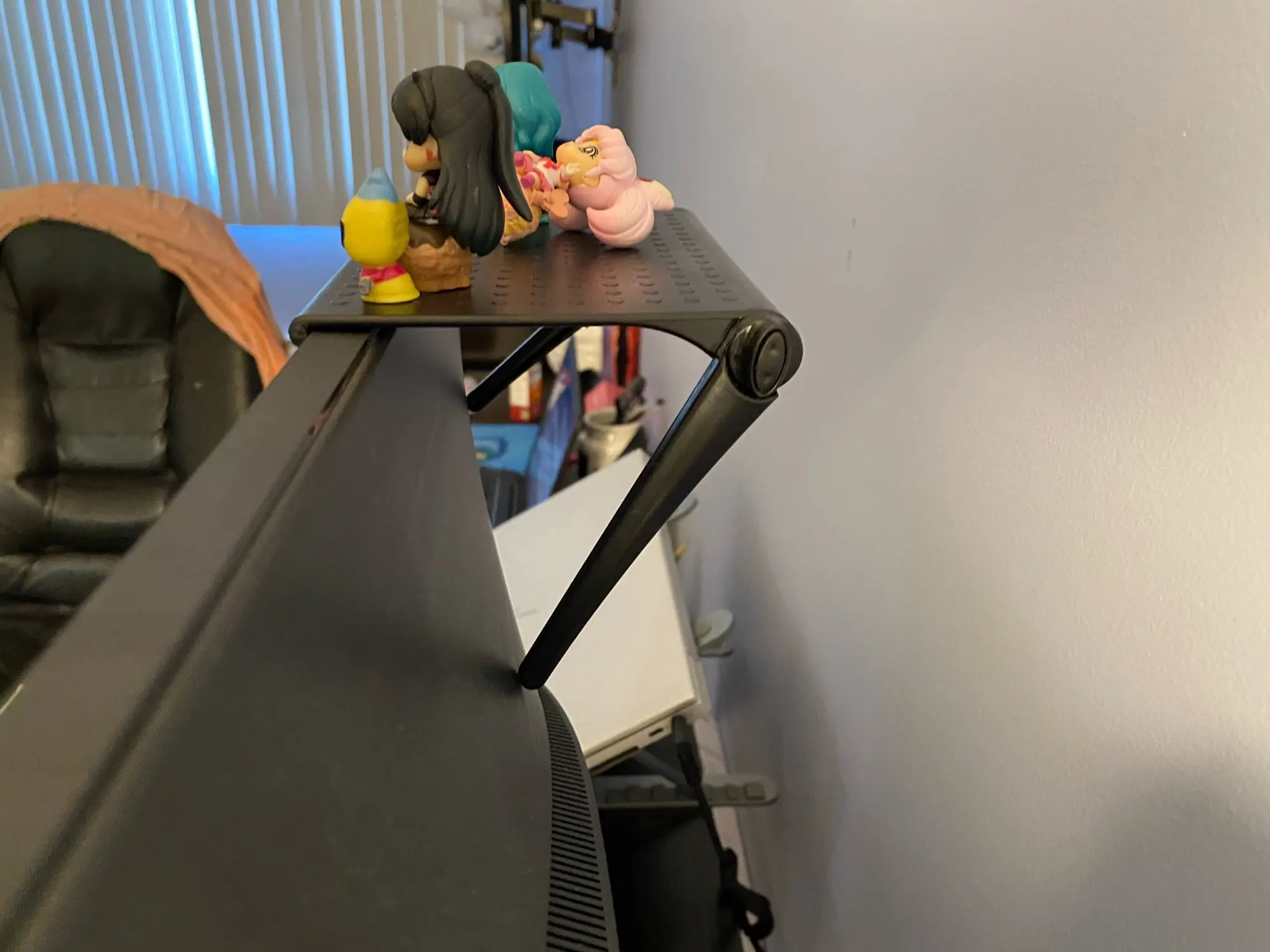 Так хорошо! Идеально сидит на моем мониторе! Я нарисую их розовыми, чтобы они подходили. Один поп винил подходит или три крошечных фигурки. Прибыл так быстро в Австралию!