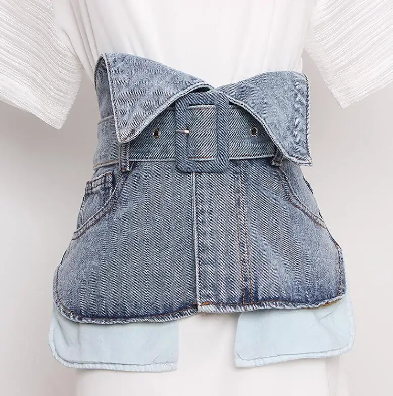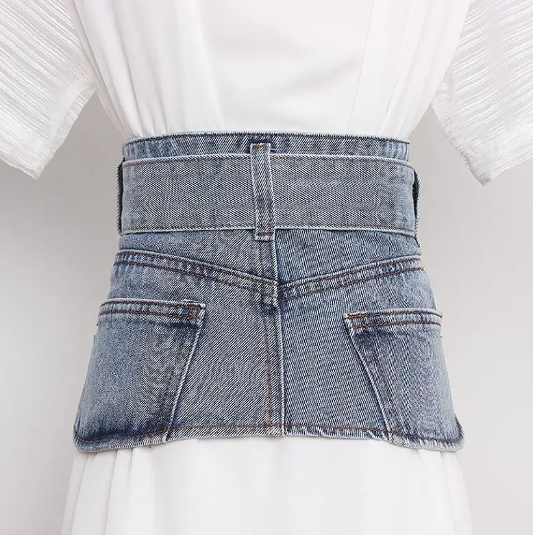 Женский модельный винтажный синий широкий Джинсовый пояс, женское платье, корсеты, пояс с украшением, широкий пояс R967