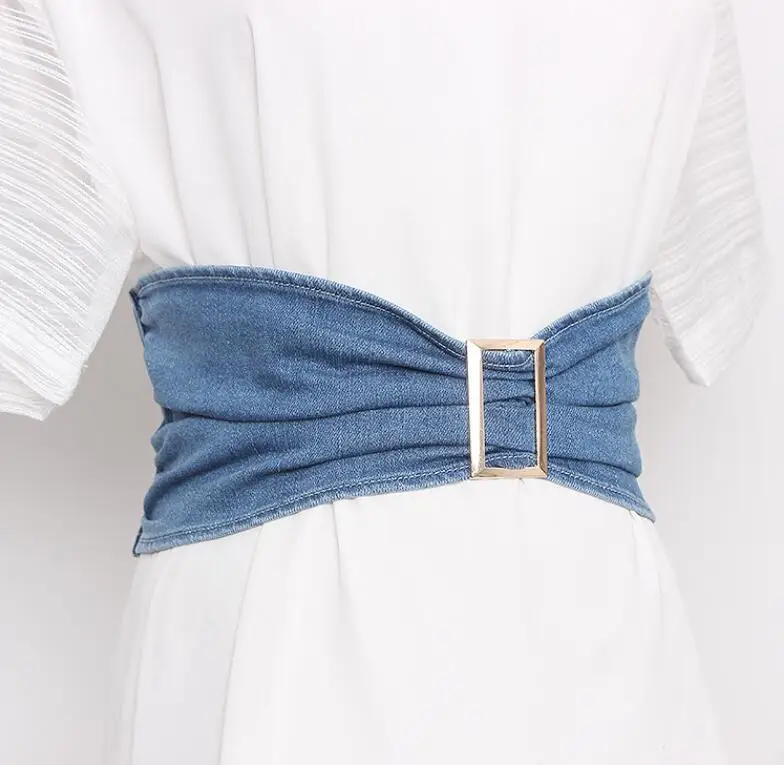 Женский подиумный синий джинсовый эластичный пояс на молнии, женские корсеты для платья, пояс, ремни, декоративный широкий пояс R349