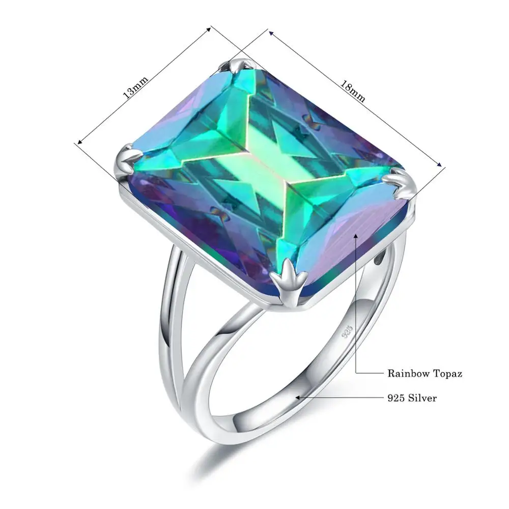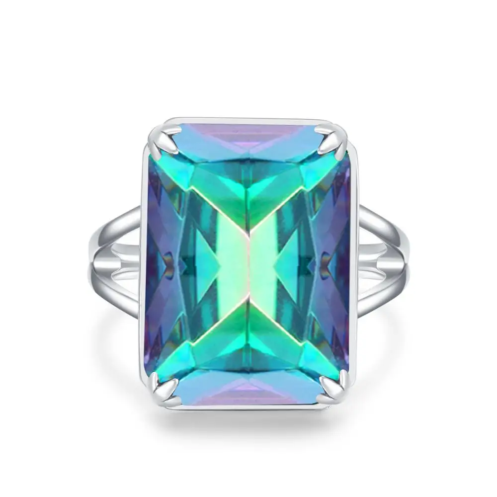 Серебряное кольцо 925 Мистический топаз драгоценный камень Обручение кольцо Для женщин в богемном стиле прямоугольник 925 пробы Серебряное кольцо Юбилей, ювелирное изделие, подарок