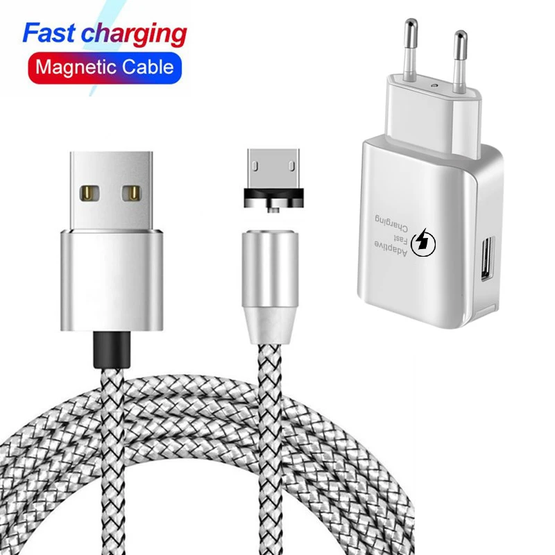 Магнитный кабель Micro USB Type-C 1 м, быстрая зарядка, магнитное зарядное устройство для Xiaomi iPhone 11 X Samsung Sony Meizu, мобильный телефон, Адаптивное зарядное устройство