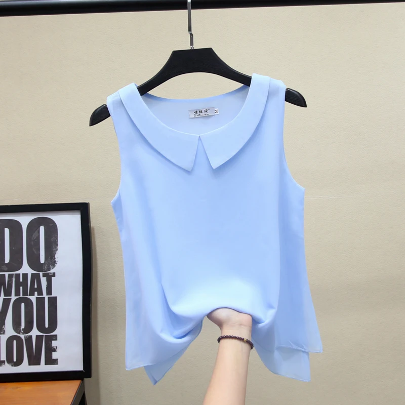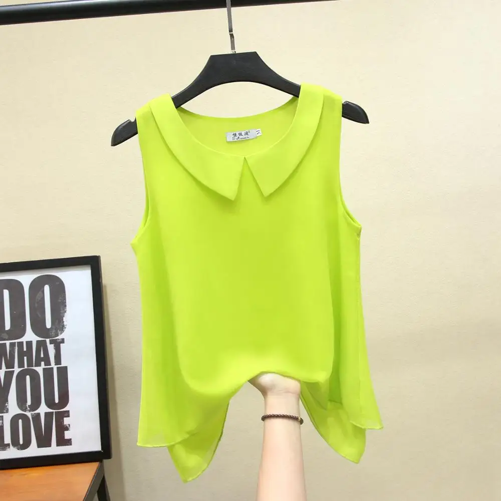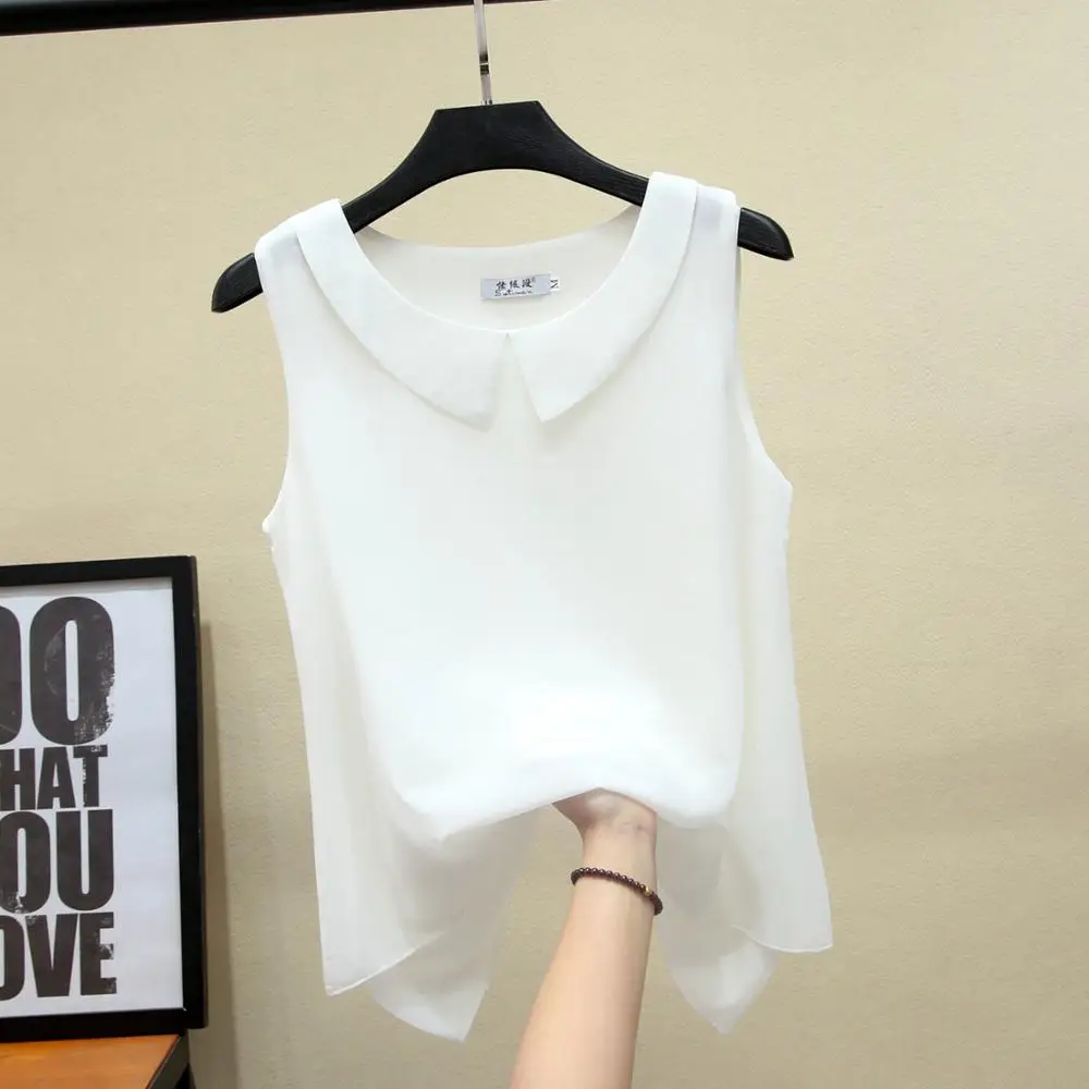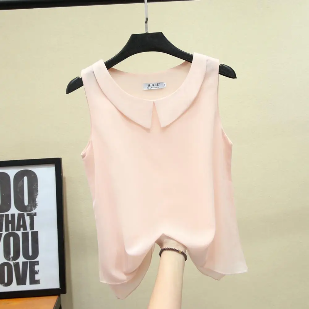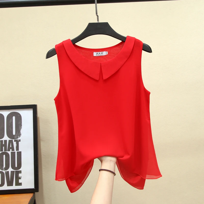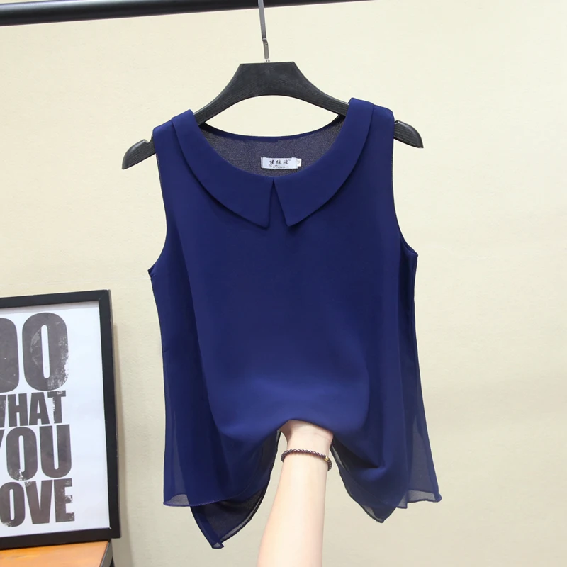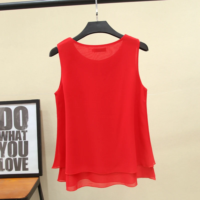 Женская шифоновая блузка без рукавов, рубашка размера плюс, элегантная офисная Дамская майка, туника, наряд XZ810