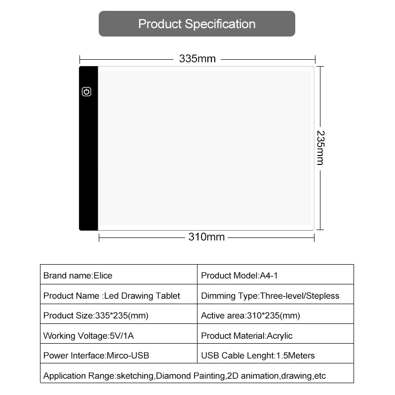 Elice A4 СВЕТОДИОДНЫЙ световой планшет Artcraft калькировочная световая коробка копировальная доска цифровые планшеты алмазная живопись планшет для рисования