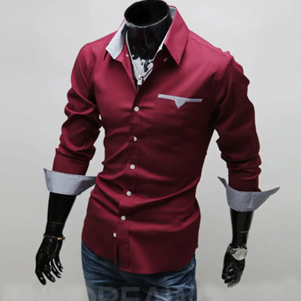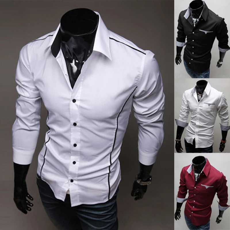 6 стилей, модная новинка, мужская приталенная рубашка с длинным рукавом, Стильные повседневные рубашки, однотонные роскошные мужские формальные рубашки
