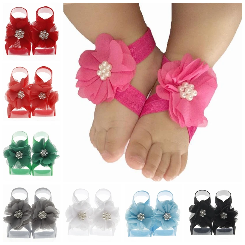 Симпатичные шифоновые босоножки для новорожденных с цветами