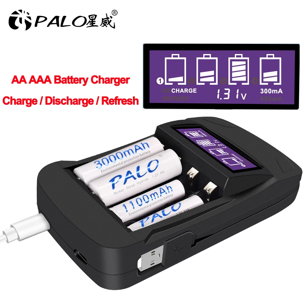 Зарядное устройство PALO 1,2 в AA AAA, умное зарядное устройство с ЖК-дисплеем, зарядное устройство для AA AAA NiCd NiMh аккумуляторных батарей, быстрая зарядка, разряд