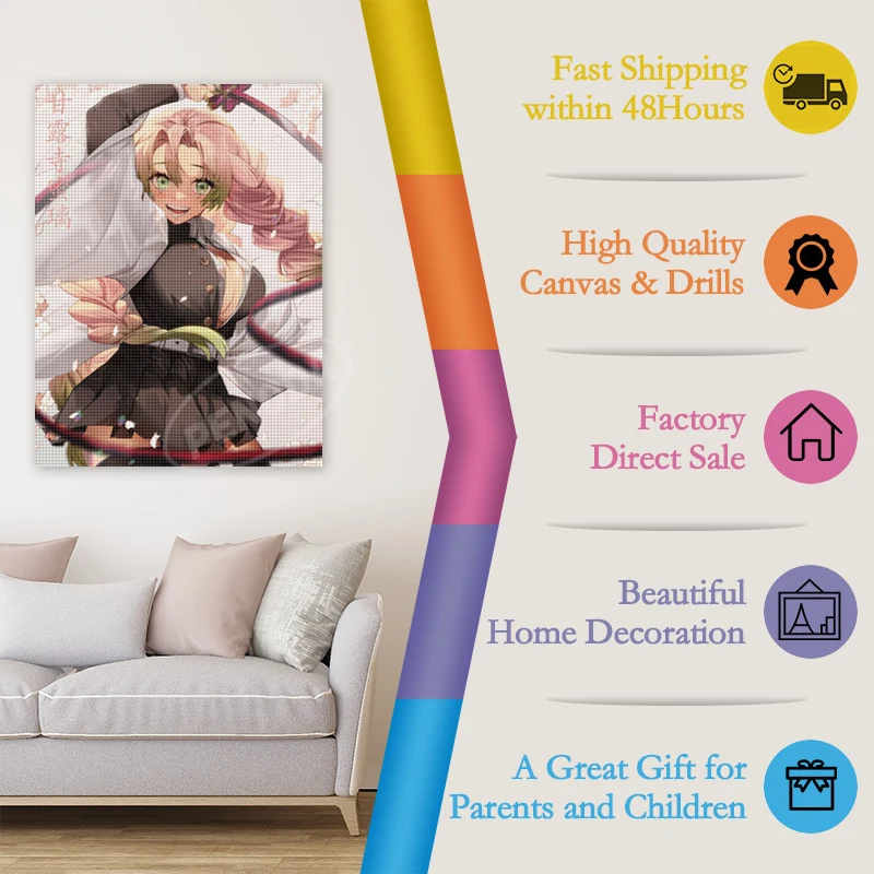 Алмазная вышивка 5D Demon Slayer Kimetsu No Yaiba из японского аним...