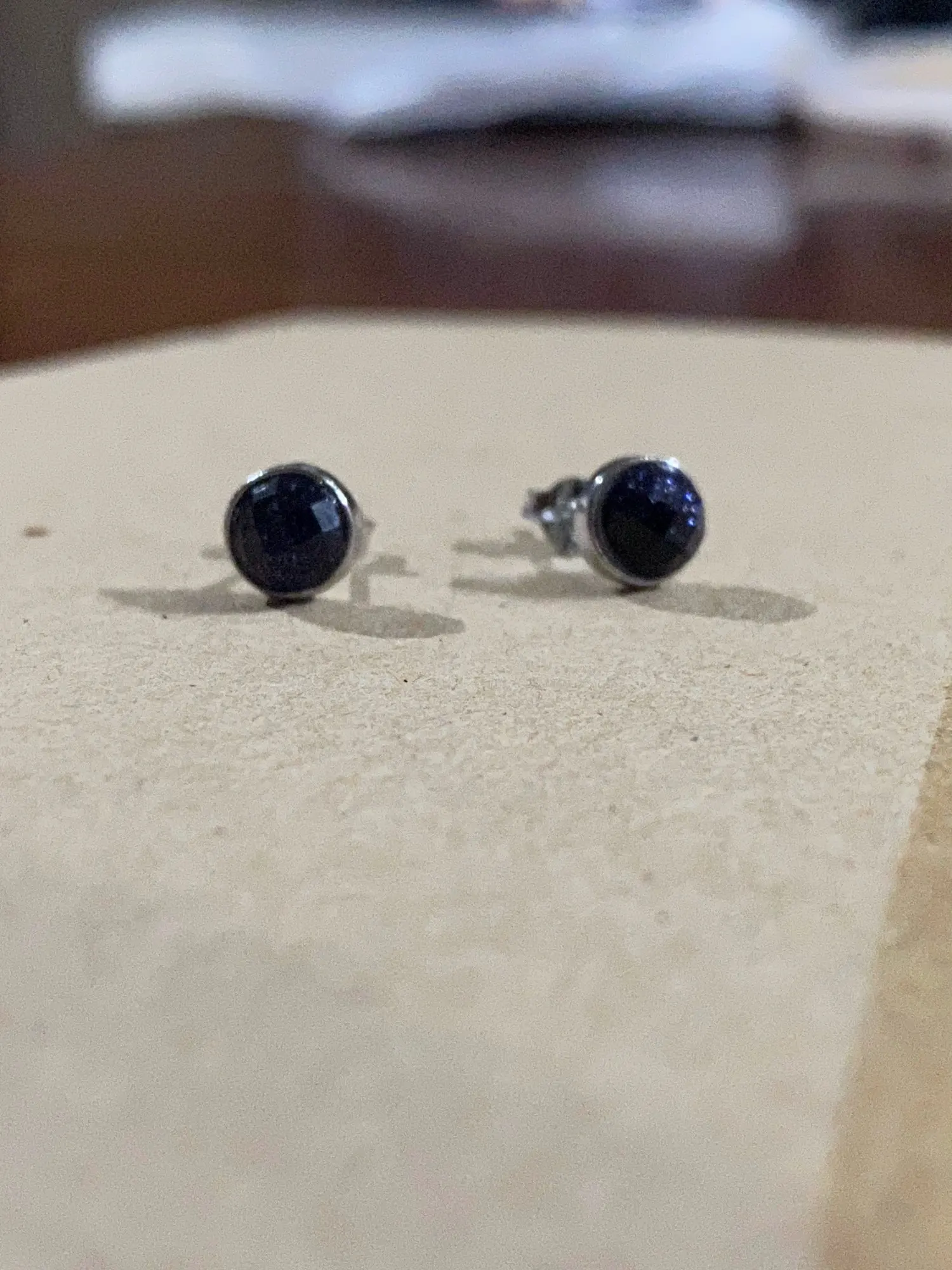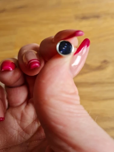 Камень-это настоящий синий песчаник, он красивый, но игла слишком длинная, и она huts, вы не можете использовать его с наушниками или сном, просто восьмиугольный.