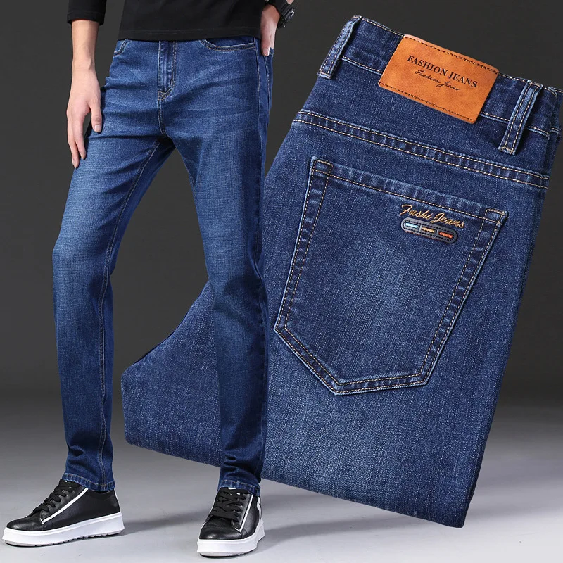 Классические мужские синие джинсы, Расширенные эластичные свободные прямые джинсовые брюки, мужские Брендовые брюки больших размеров 40 42 44, 2020