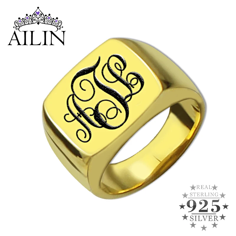 Кольцо AILIN, серебро 925 пробы, на заказ, для мужчин, женщин, мужчин, 18 К, позолоченное, с надписью, с гравировкой, монограмма, кольцо для отца, матери, ювелирные изделия, подарки