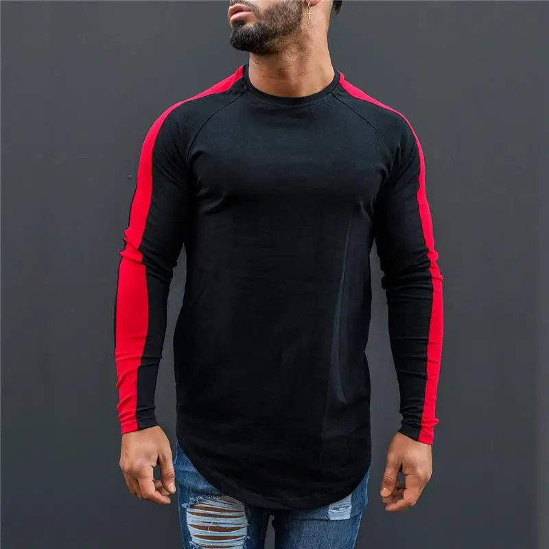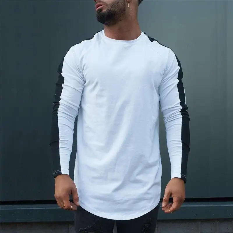 Мужская футболка с длинным рукавом и круглым вырезом, размеры до 3XL