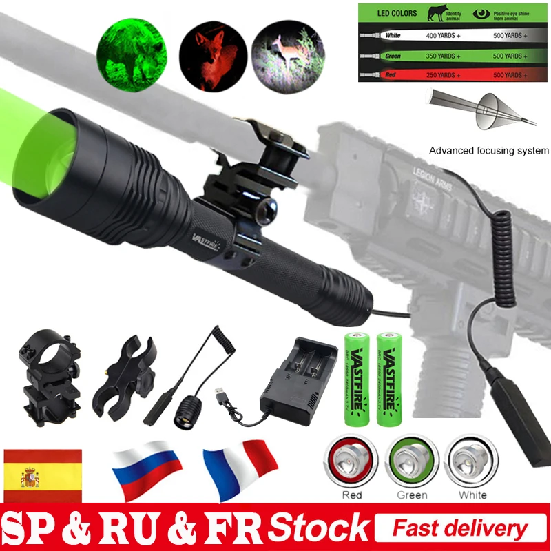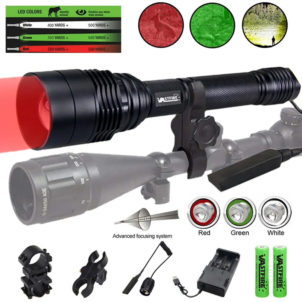 XRE Красный Зеленый Белый Хищник светильник светодиодный тактический флэш-светильник зум-Фокус регулируемый фонарь для охоты и рыбалки Coyote Hog VarmintСпецификация:Бренд: VastfireМодель: C11Дальность действия: 500 ярдовСветодиодный: белый XM-L2 светодиодный 1300 люменов 500 ярдовЗеленый XPE светодиодный 600 люменов 350 ярдовКрасный XPE светодиодный 300 люменов 300 ярдовASPERICAL объектив: 48 мм объективРежим: 1 режим от высокогоАккумулятор: 2 аккумулятора 18650 (не включая аккумулятор)Батареи Вход Напряжение: 7,4-8,4 VВодонепроницаемость: только защита от брызгКорпус Диаметр: 25,4 мм (дополнением к любому наряду 25,4 мм кольцо или крепление)Материал изделия: алюминиевый сплавЦвет: черныйРазмеры: 223 мм (уменьшение зума + 10 мм) (длина) / 48 мм (головка)/25,4 мм (корпус) / 29 мм (хвостик)Посылка включает:Мы отправим посылку, как показано на картинке, которую вы выбрали, спасибо!