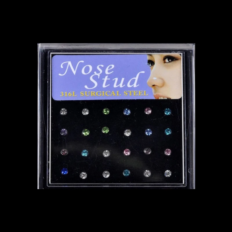 Оптовая продажа, 12 пар носочков, украшенные разноцветными кристаллами губ шпильки для пирсинга носа серьги-гвоздики ювелирное изделие для тела, белый нос кольцо комплект для женщин подарок для вечерние