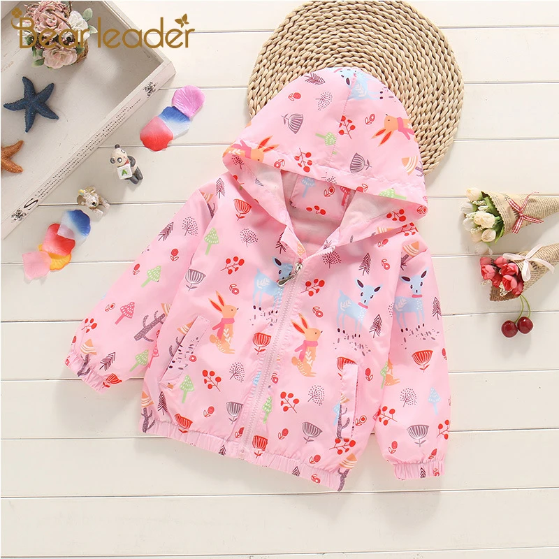 Bear Leaderпальто для маленьких девочек новая детская повседневная куртка с принтом животных для девочек Новинка 2021 года, Детская осенняя одежда с шапкой, костюмы