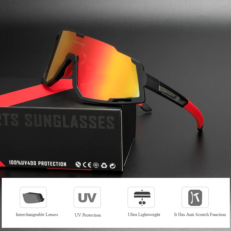 Comaxsun поляризованные велосипедные очки с 3 линзами, очки для шоссейного велосипеда, солнцезащитные очки для велоспорта, горного велосипеда, велосипедные очки 822