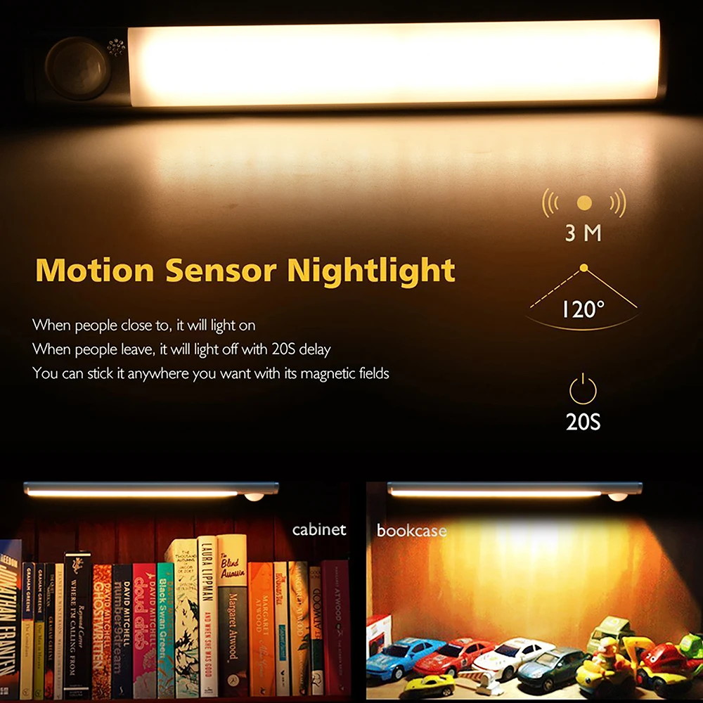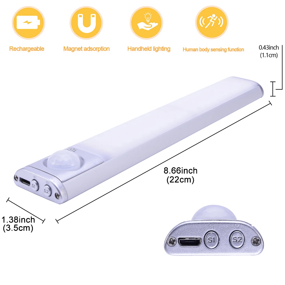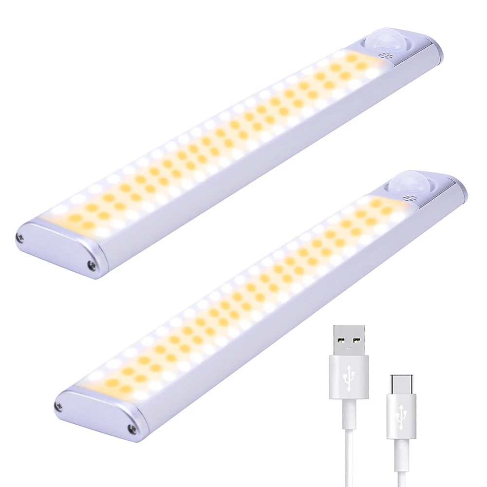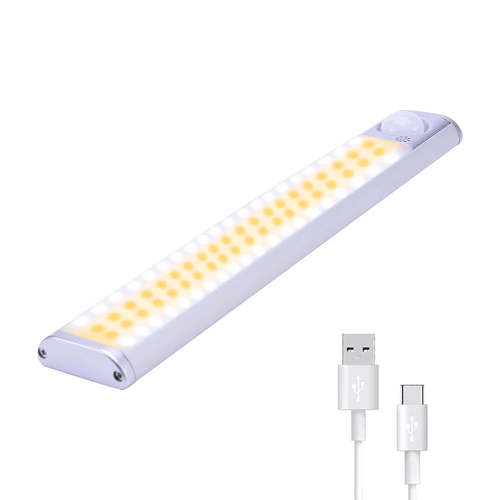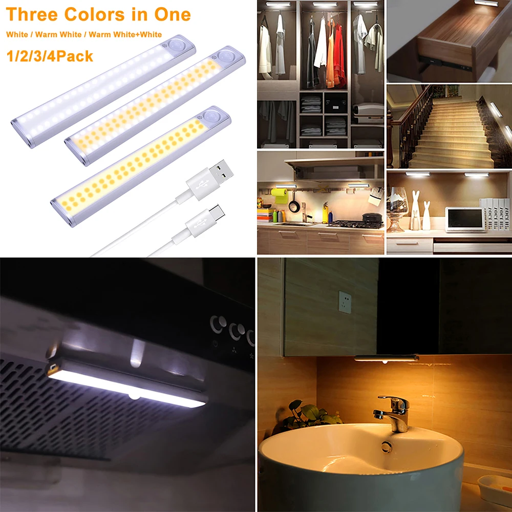 80 светодиодовUSB Перезаряжаемый PIR датчик движения светодиодный шкафСветильник 3 светильникЦветРежимы затемненияПортативный настенный светильник с жесткой полоской для кухонного шкафа 1/2/3/4 в упаковке