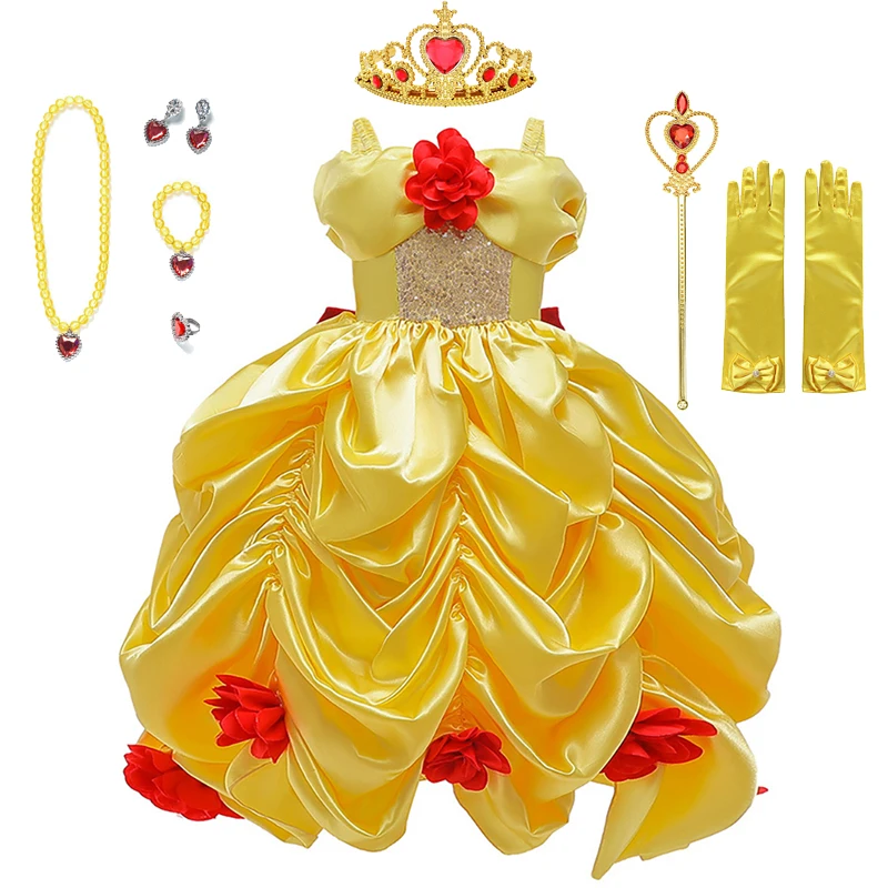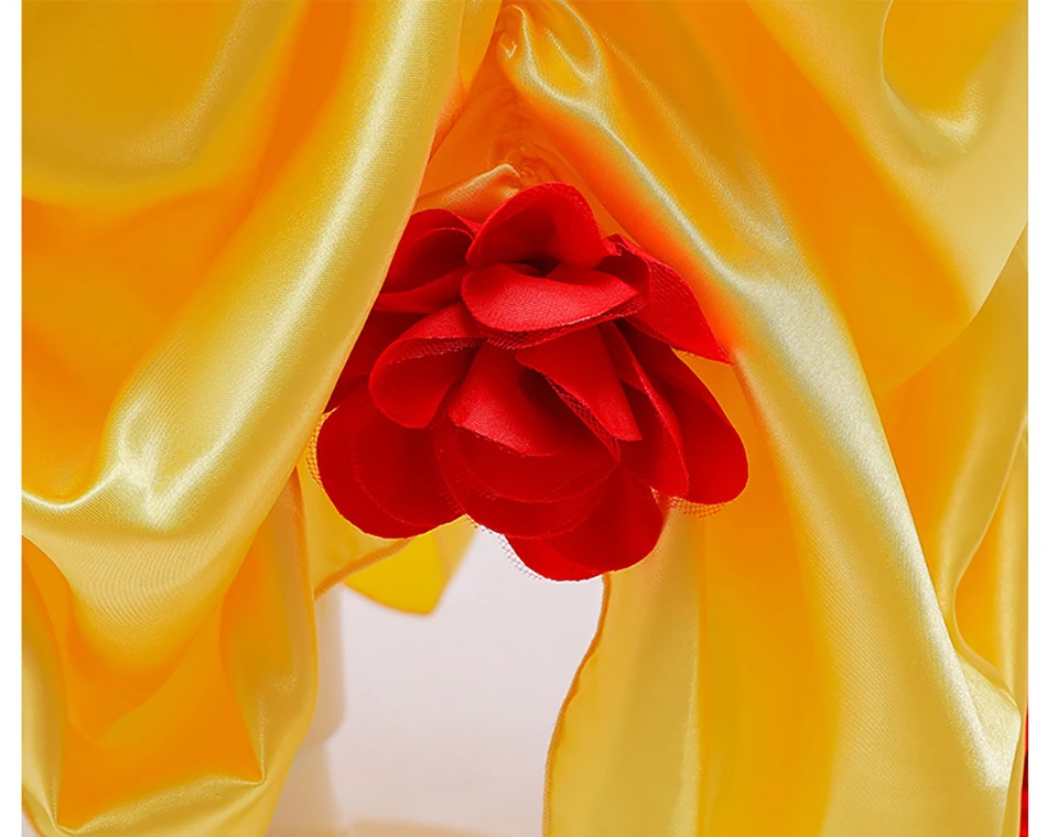Платье-пачка принцессы Белль, костюм красавицы и чудовища для девочек, бальное платье для косплея, платья с бантом, Цветочное платье на Хэллоуин