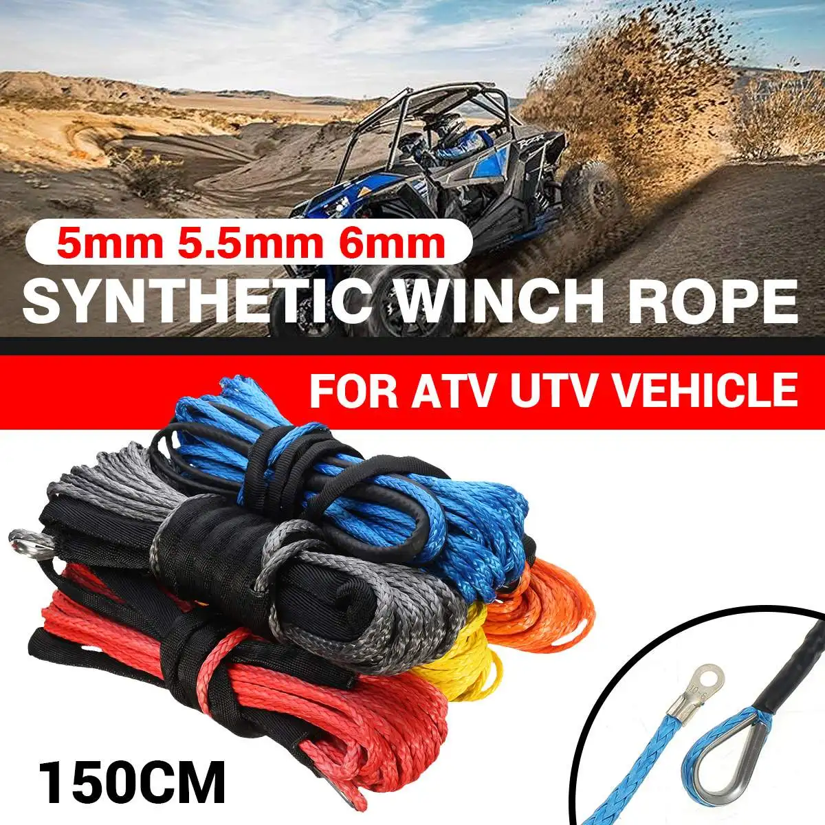 Трос для лебедки, 15 м x 5 мм5,5 мм6 мм, буксировочный трос, леска из синтетического волокна, 5500lbs7000lbs7700lbs для Jeep ATV UTV Off-road