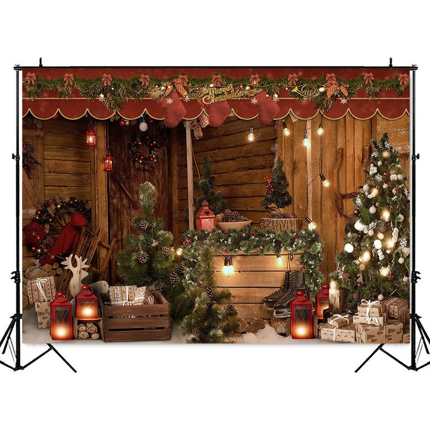 Рождественский фон для фотографии новогодняя елка портативная лампа Подарочные игрушки Деревянный ребенок декоративный фон фотосессия Фотостудия