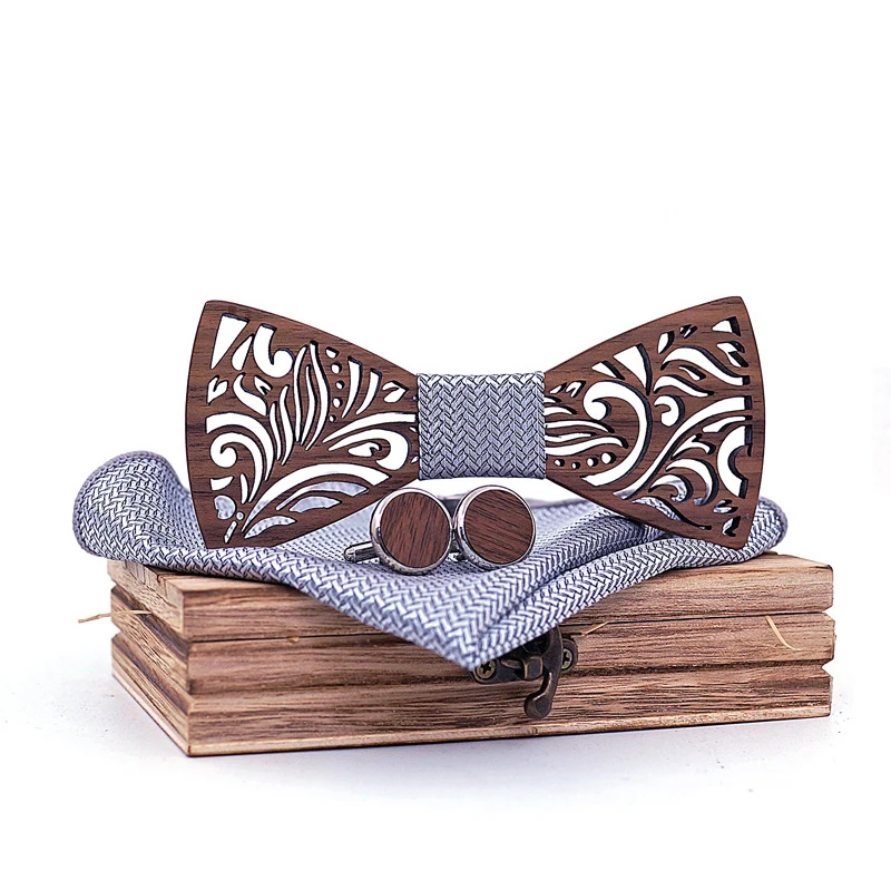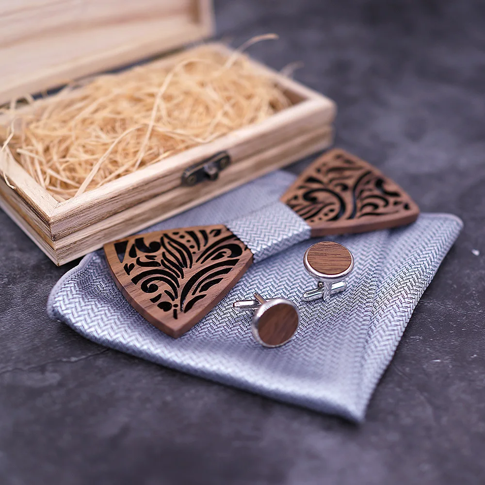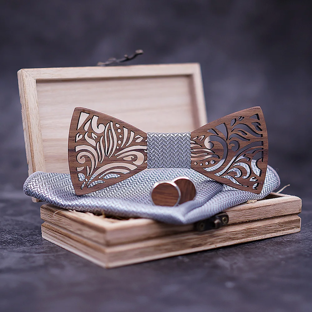 Linbaiway модный мужской бриллиантовый носовой платок и запонки в коробке с деревянным галстуком-бабочкой Свадебный галстук-бабочка мужской Пижамный галстук