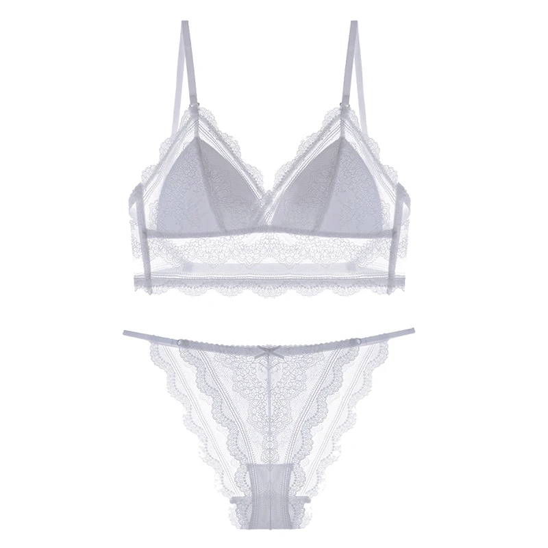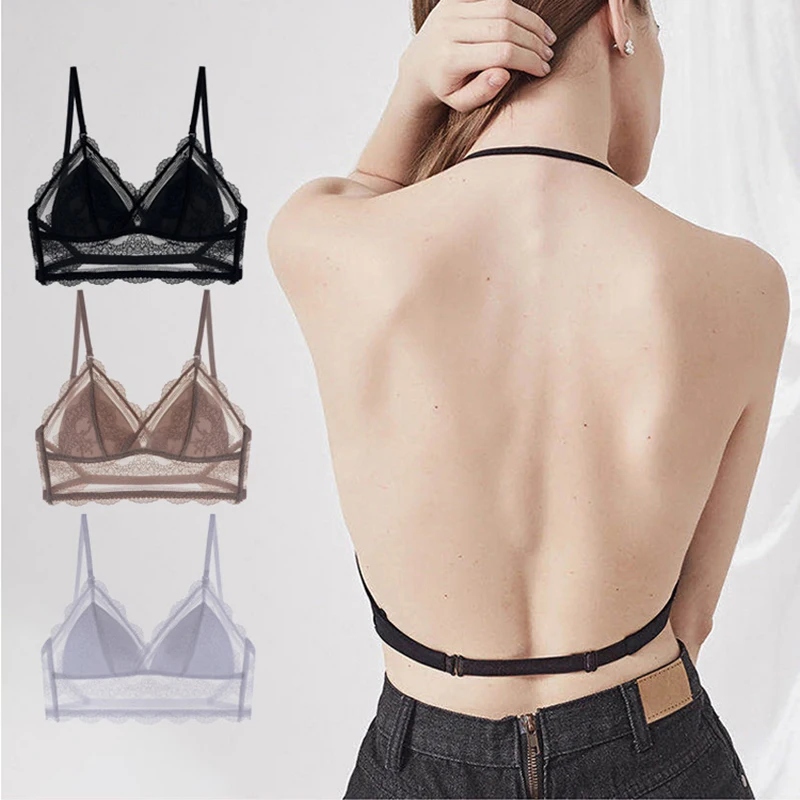 Комплект женского кружевного нижнего белья, тонкий треугольный бюстгальтер с бретельками через шею и трусики-стринги, лето 2020