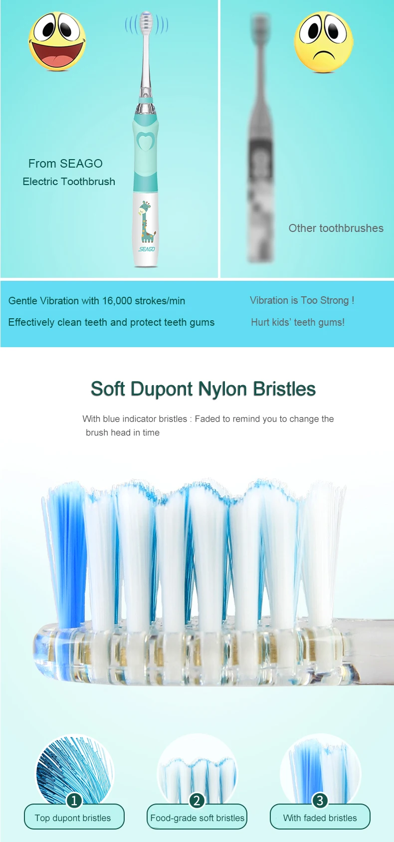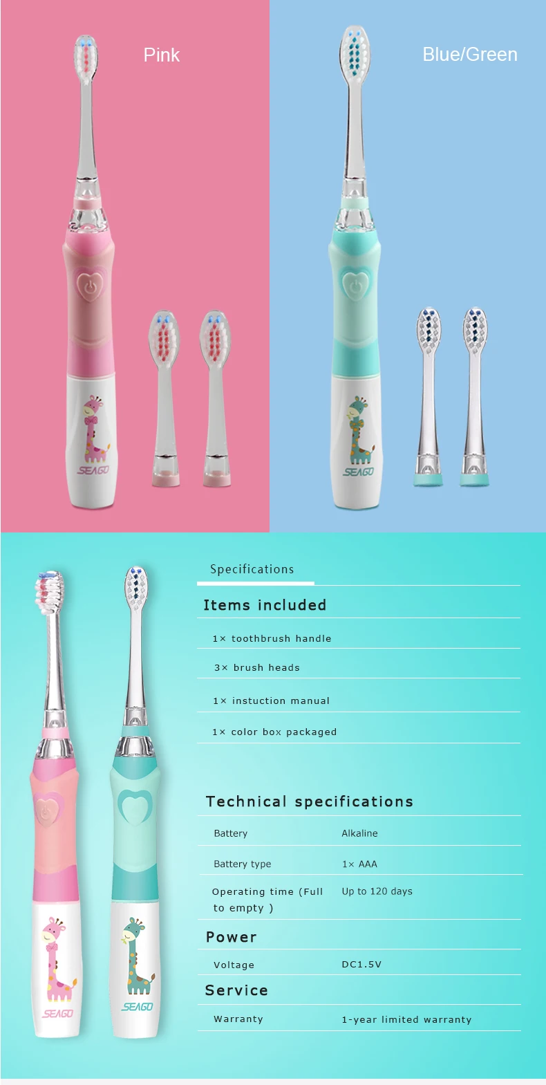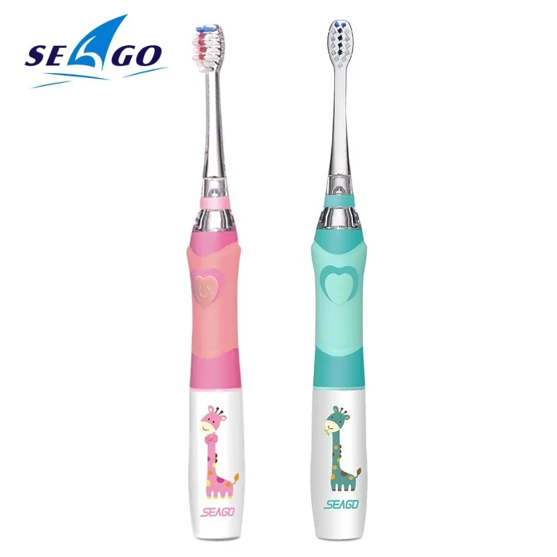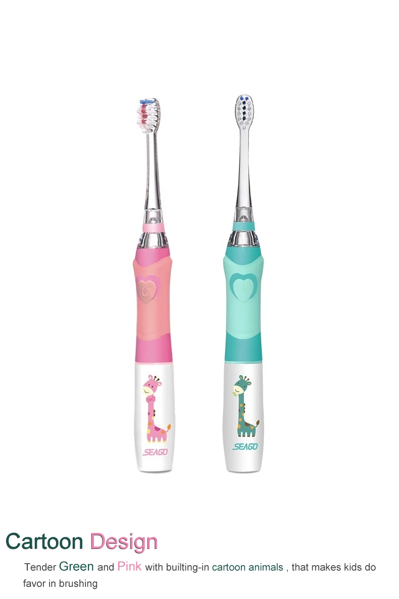 Зубная щетка SEAGO Детская электрическая, розовая, зеленая, со светодиодной подсветкой и умным таймером, 2021
