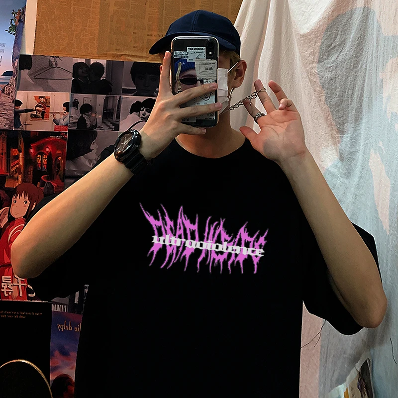 Футболка мужская в стиле Харадзюку, модная уличная одежда с принтом букв, Повседневная Свободная винтажная рубашка в стиле панк, Топ унисекс, на лето