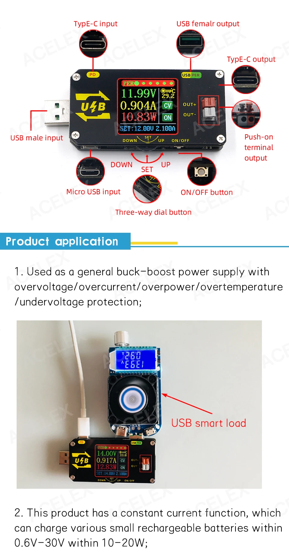 USB-тестер для зарядки с цветным экраном, цифровой контроль, понижающий напряжение и Повышающий источник питания, применимая Модель: XY-UMPD