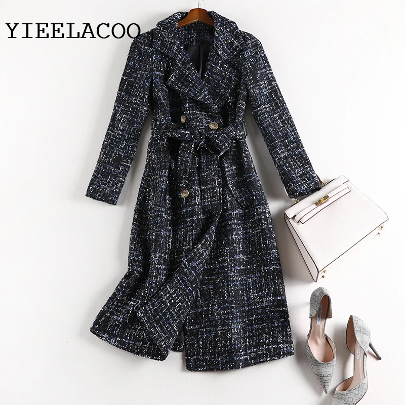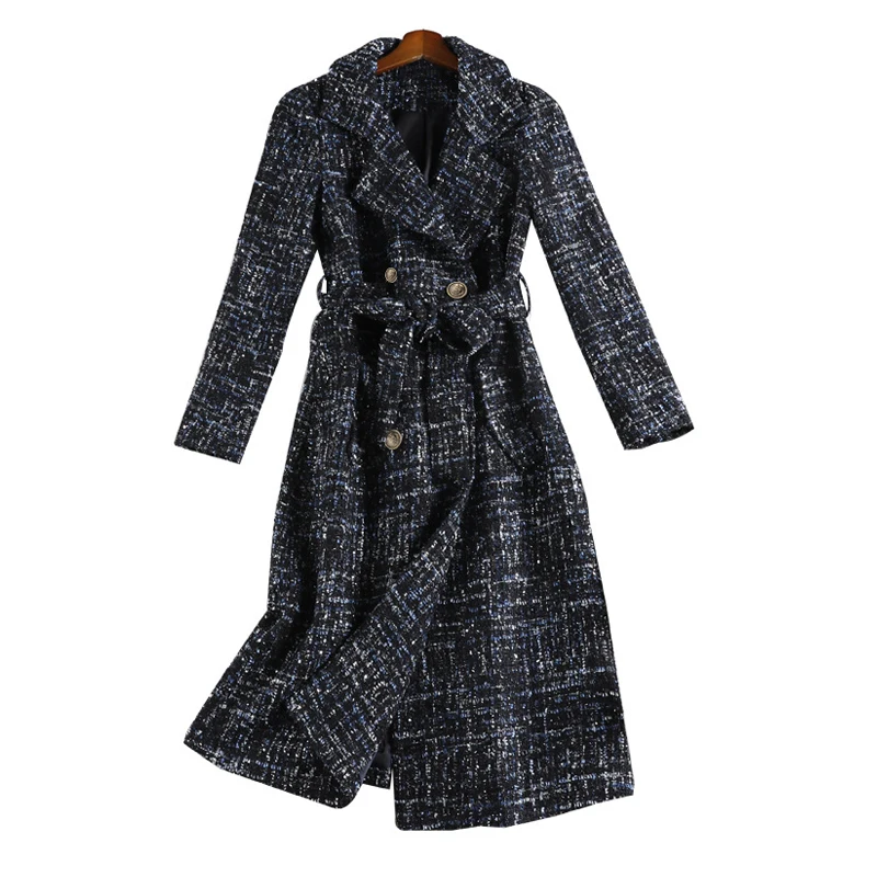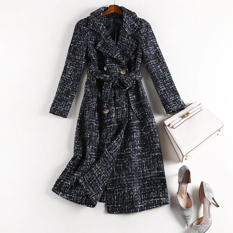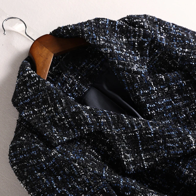 Женское пальто, темно-синяя куртка из ткани с блестками на веснуОсеньзиму, твидовая деловая Женская цельная куртка, пальто